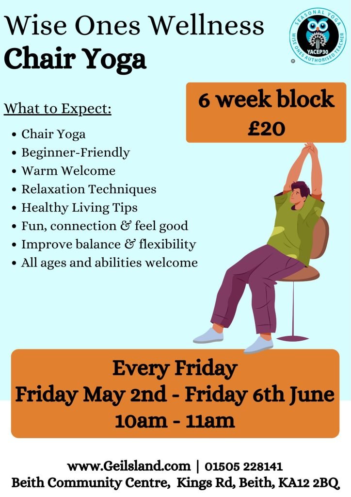 ๐ช Chair Yoga โ 6-Week Block ๐ฟ Fridays | May 2nd โ June 6th | 10am โ 11am ๐ Beith Community Centre ๐ฐ Just ยฃ20 for the full block!