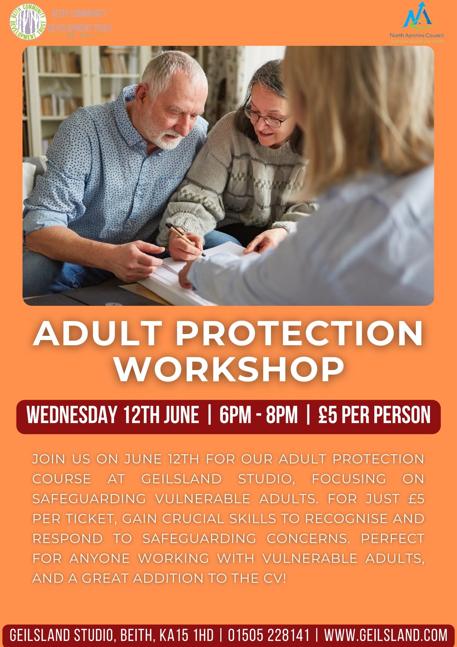 FeaturedGeilsland Estate Studio Geilsland Estate, Wardrop Street, Beith, BeithThis March we will be opening the doors to our community to join us for a free safeguarding course at Geilsland Estate. Join us for a crucial evening dedicated to learning safeguarding techniques that will help you protect and support the most vulnerable people among us